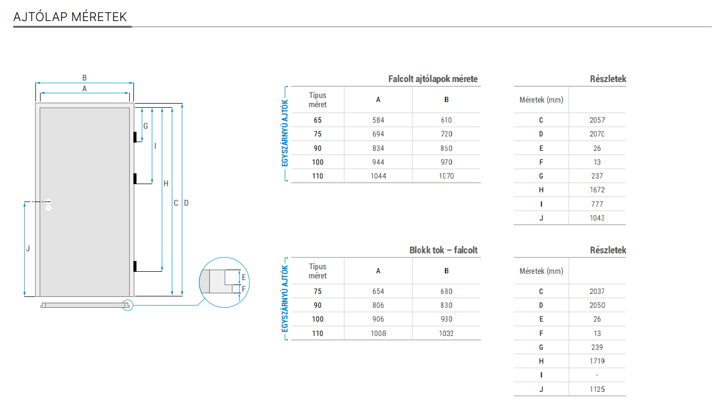 • Az ajtó a következő méretekben érhető el: 75 cm, 90 cm, 100 cm