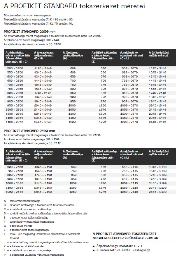A Profikit Standard minden ajtógyártóval kompatibilis. Alkalmas fa-, keret nélküli üvegajtókhoz valamint a Master és az Idea ajtókhoz. Funkcionalitása megegyezik a Norma Standard tokszerkezetével - csak könnyített szerkezetében különbözik, és csak gipszkarton válaszfalba építhető be. A tokszerkezet nem bírja a terhelést.