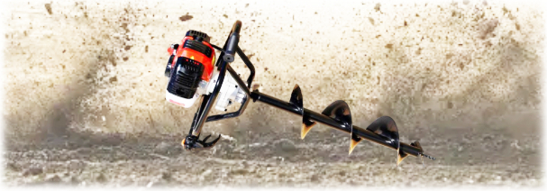A benzines motorral felszerelt földfúró könnyen kezelhető, és a legkülönfélébb fúrási feladatok elvégzésére alkalmas pl. gazdaságokban facsemeték ültetése, útépítésnél, kerítésoszlop beállításra stb.